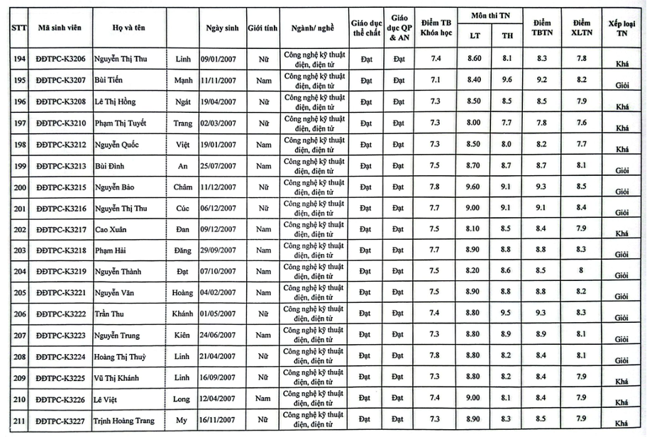 Quyết định công nhận tốt nghiệp ngành công nghệ kỹ thuật điện, điện tử khóa 3, niên khóa 2022-2024