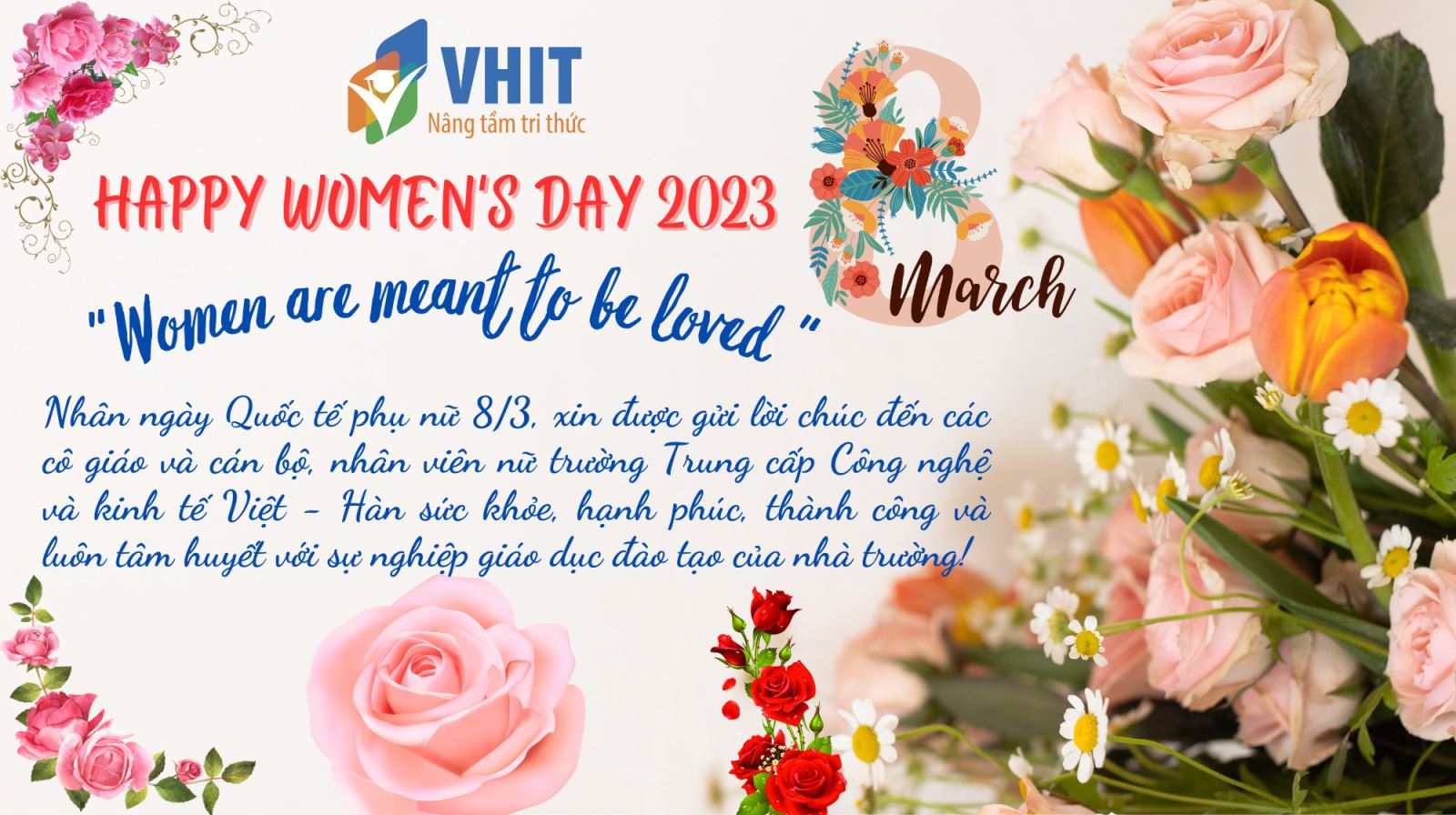 Trường Trung cấp Công nghệ và kinh tế Việt - Hàn  xin được gửi đến các cô giáo và cán bộ nhân viên nữ sức khoẻ và công tác tốt