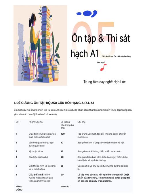 ÔN TẬP VÀ THI SÁT HẠCH XE MÁY HẠNG A1 - TT DẠY NGHỀ HỢP LỰC