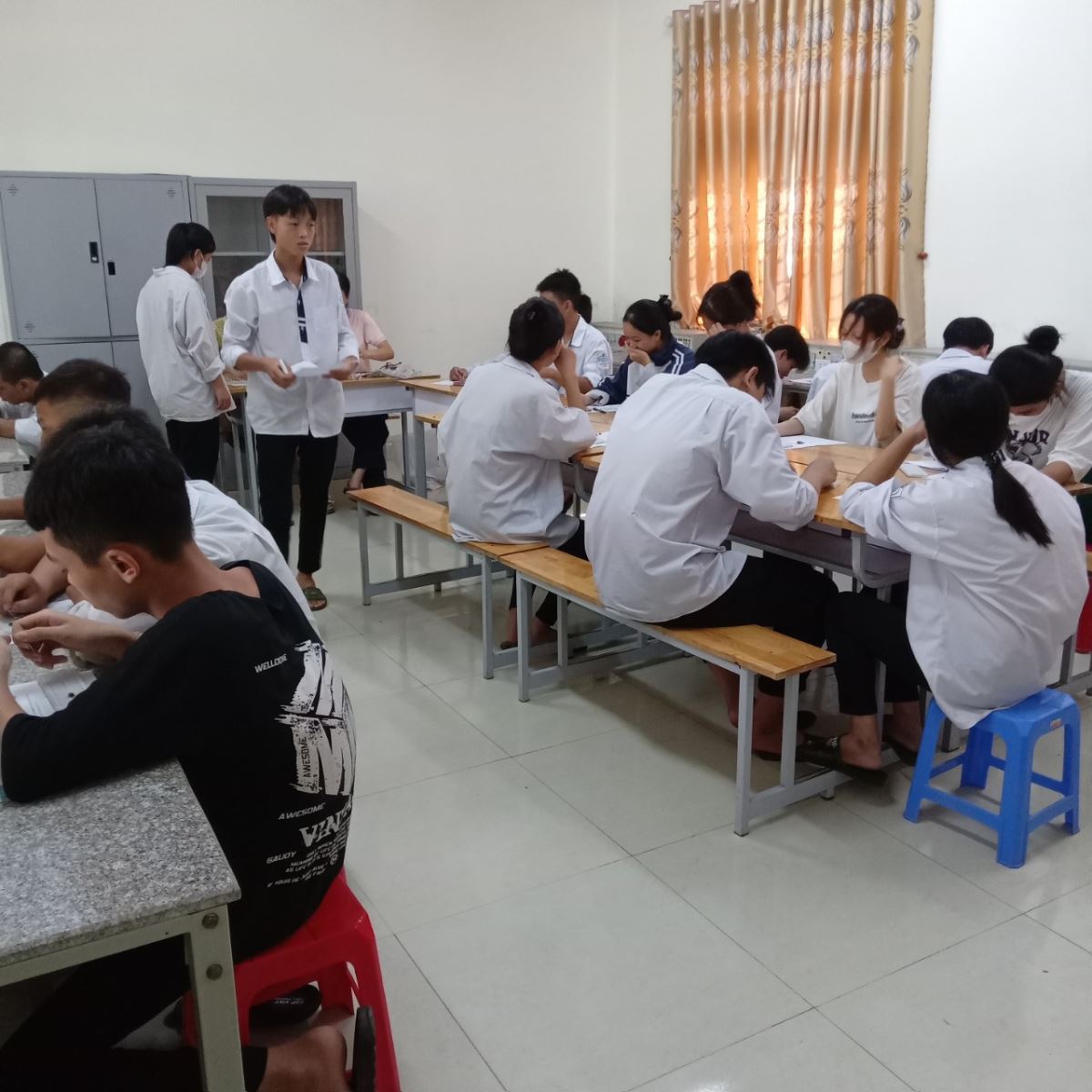 Trong học kỳ 2, các em được thầy cô hướng dẫn lý thuyết sau đó xuống phòng thực hành để thực hành, nhiều em tay nghề may rất tốt, không chỉ là tập may đường thẳng, may chiếc túi áo mà thậm chí đã may được thành phẩm những chiếc áo nhỏ xinh. Sau 2 năm học Trung cấp tay nghề của các em sẽ được đánh giá rất cao.