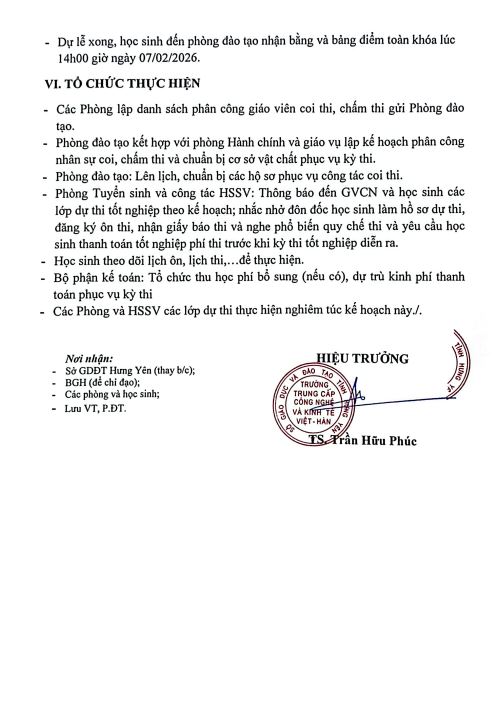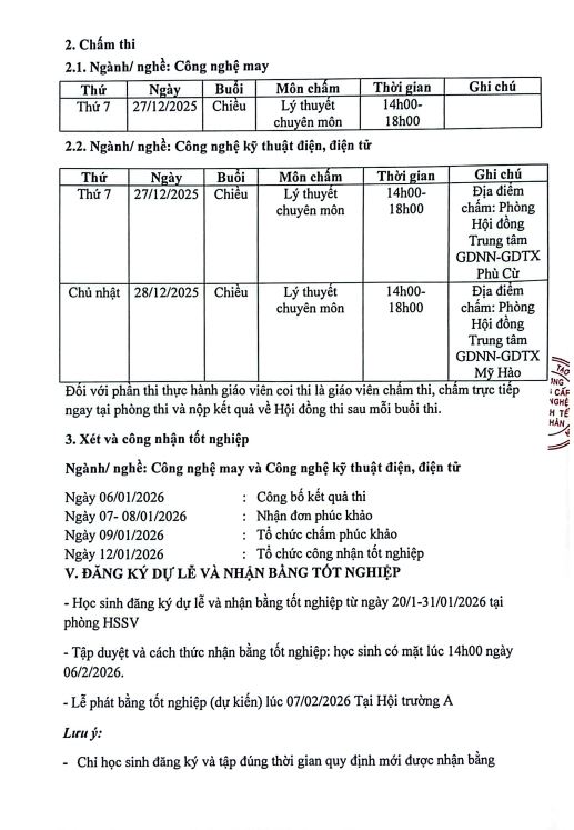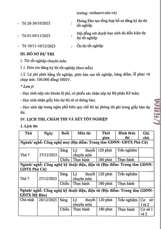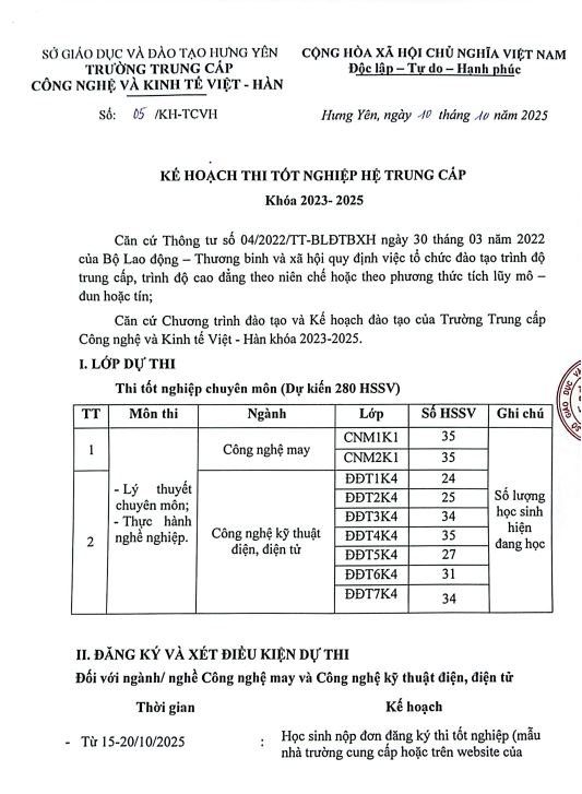 Kế hoạch thi tốt nghiệp khóa 4, niên khóa 2023-2025