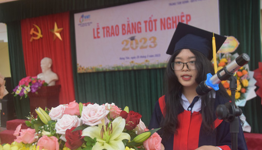 Tân Khoa Doãn Thị Hồng Ngọc đại diện học sinh phát biểu cảm nghĩ