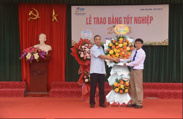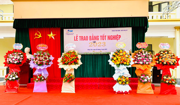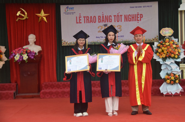 Trong không khí sôi nổi thi đua lập thành tích chào mừng Tháng Thanh niên 26/03/2023. Chiều ngày 25/03/2023, Trường Trung cấp Công nghệ và Kinh tế Việt – Hàn  phối hợp với Trung tâm GDNN - GDTX huyện Phù Cừ trang trọng tổ chức Lễ trao bằng tốt nghiệp cho 147 học sinh ngành Công nghệ thông tin và ngành Tiếng Anh hệ trung cấp chính quy khóa 2020 -2022 .