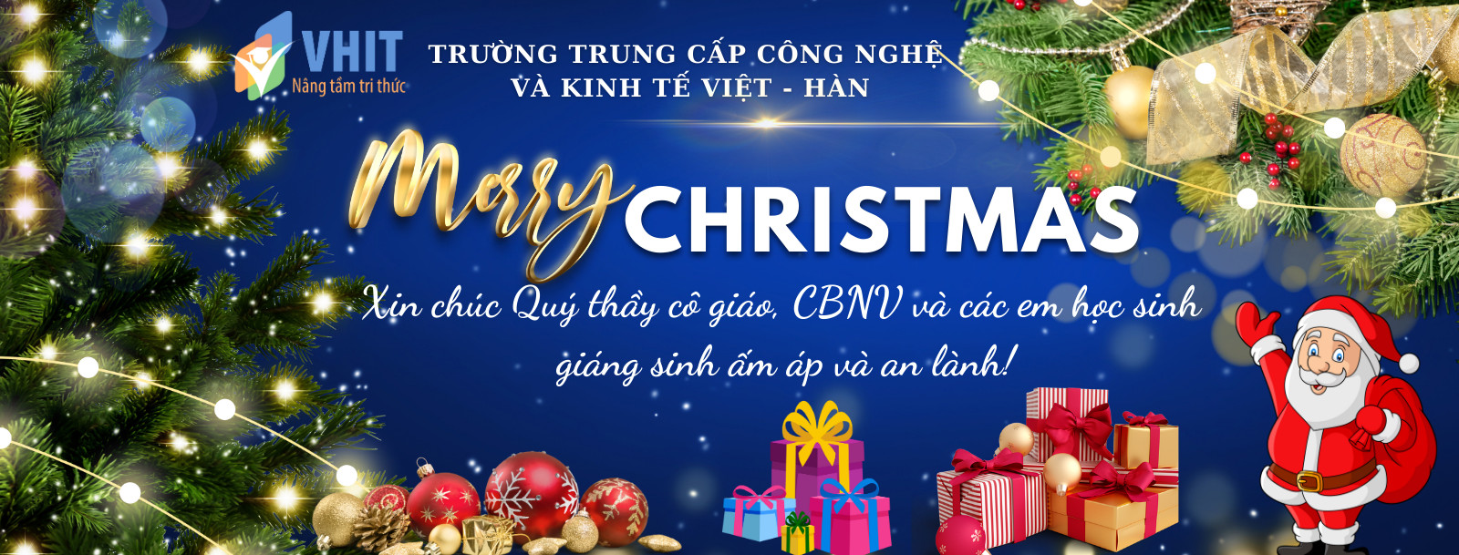 Nhân dịp giáng sinh và năm mới 2023, Trường Trung cấp Công nghệ và Kinh tế Việt - Hàn xin kính chúc Quý Thầy/ Cô, Quý đối tác và các bạn học sinh, sinh viên cùng gia đình một mùa giáng sinh an lành và một năm mới mạnh khoẻ và thành công.