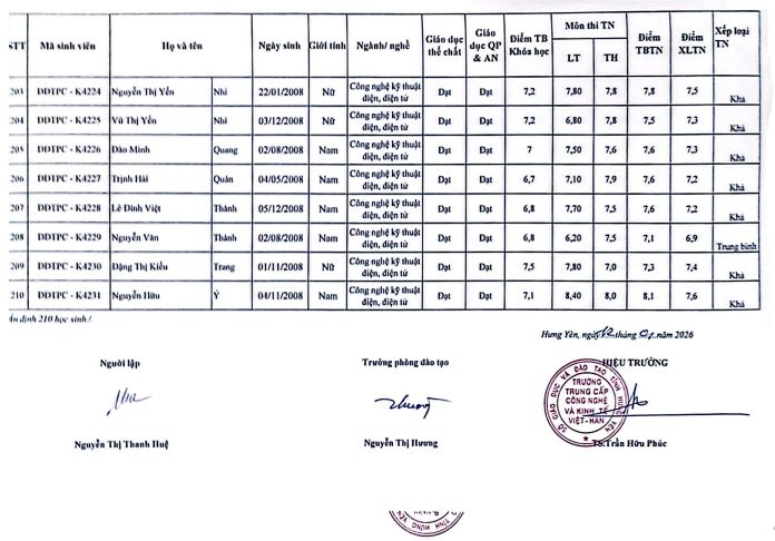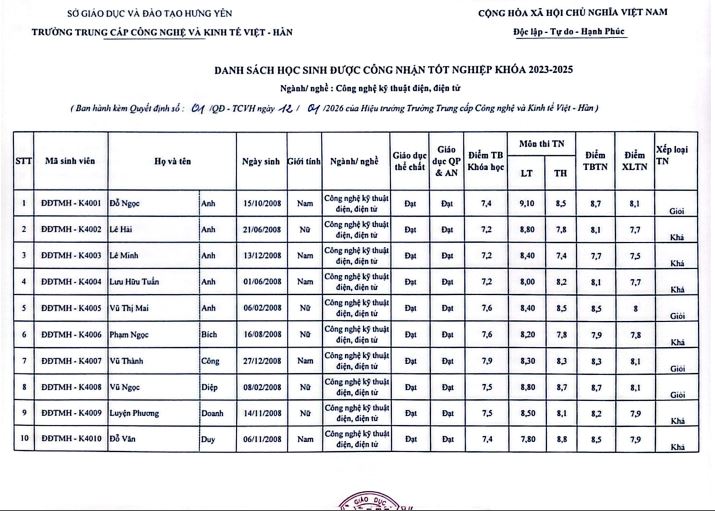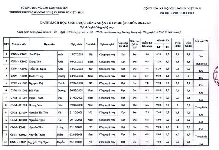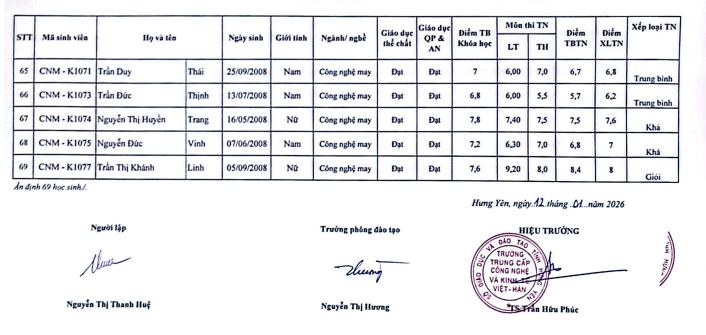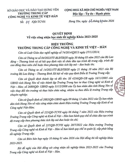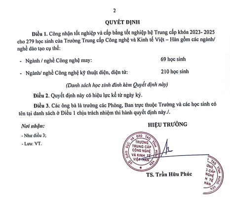 Quyết định công nhận học sinh tốt nghiệp khóa 4, niên khóa 2023-2025