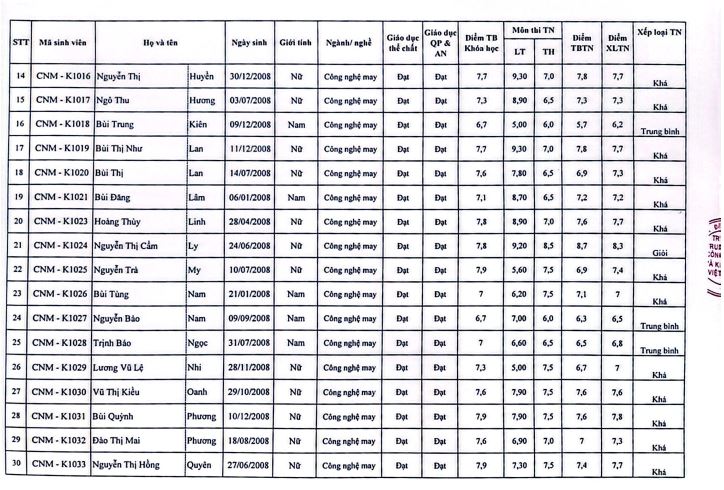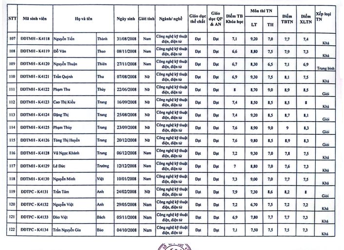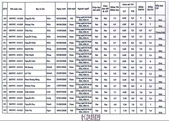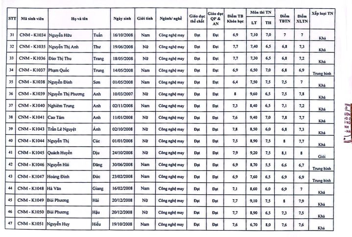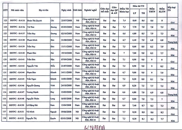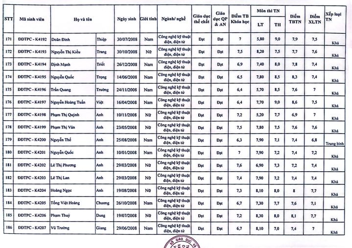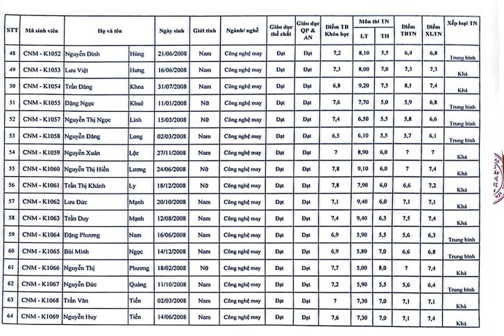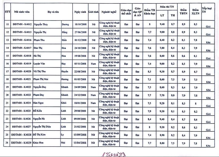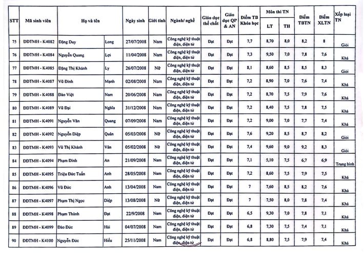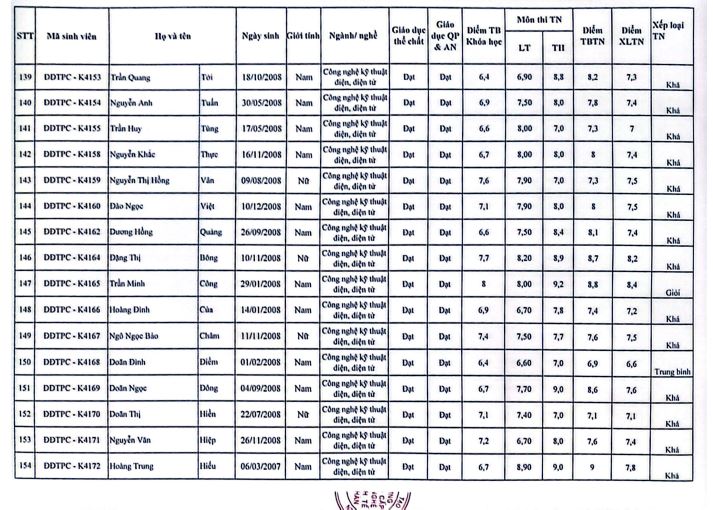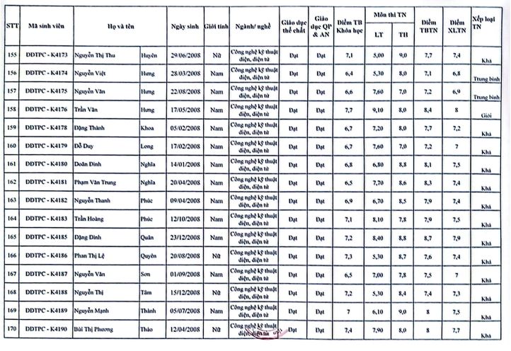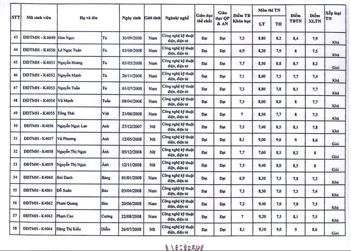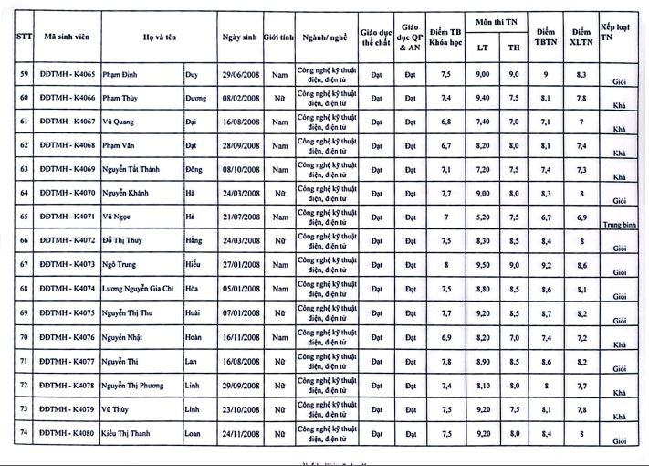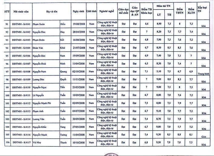 Kết quả xét điều kiện dự thi tốt nghiệp